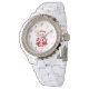 Vous pouvez admirer mon magnifique dessin de Noël de deux sucres de canne enveloppé dans une belle cravate arc rouge, avec Joyeux Noël. J'appelle ce dessin, "Sucres de canne de Noël", ajouté à cette montre en émail blanc en strass féminin. Cette montre en émail blanc en strass féminin fait le cadeau de Noël parfait pour souhaiter un joyeux Noël à quelqu'un."