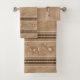 Ces oeuvres originales de style pictographique moderne de pronoms dessinées sur un arrière - plan à texture rocheuse s'inspirent de l'art rupestre préhistorique, des pétroglyphes, des pictogrammes et des troupeaux d'"antilopes" que l'artiste a vus près de chez elle dans le sud-ouest. Bordé par des bandes géométriques représentant les montagnes et les pins du sud-ouest. Coordonnées avec la collection de Motifs géométriques Brown et bleus de style sud-ouest. Ce linge de toilette dans cet ensemble est muni de la tête d'une antilope de pronoms. Artellus Artworks™ présente des oeuvres d'art originales et des designs qui sont protégés par copyright et qui contiennent une signature cachée. Artellus Artworks™, Marilynn Flynn, Zazzle et Zazzle Affiliates et Zazzle Referrers sont les seuls vendeurs autorisés des conceptions Artellus Artworks™.