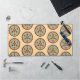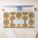 This design is based on a medieval apotropaic (protective) symbol carved in stone inside a church in Worlington, Suffolk, England. Here the symbol features hues based on the palette of colors from the Bayeux tapestry.