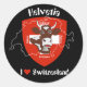 Indissociable, le drapeau national suisse et, bien sûr, une vraie vache suisse, un Edelweiss ou un Enzian. Un autocollant cadeau de la fête nationale (1er août)