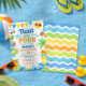 The bold, playful typography paired with whimsical water splashes creates a fun and energetic look that’s perfect for a backyard splash pad party, pool celebration, or lakeside birthday bash. This invitation is designed with a clean white background and colorful border illustrations for a bright, crisp finish.
