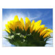 Une floraison de tournesol s'ouvrant contre un ciel bleu ensoleillé de jour d'été avec des nuages clairsemés.