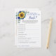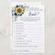 Cette carte de jeu de douche nuptiale est Comment connaissez-vous bien la mariée? Il a 10 questions auxquelles les joueurs peuvent répondre. Le design comprend des tournesols aquarelles et des roses bleus avec feuillage. Personnalisez le dos des cartes avec le nom de la mariée. Produits correspondants disponibles.