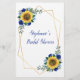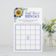 Cette carte de jeu de bingo de douche nuptiale présente des tournesols aquarelle et des fleurs bleues avec feuillage. Personnalisez le dos de la carte avec le nom de la mariée. Produits correspondants disponibles.