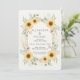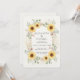 This charming wedding invitation features a soft watercolor sunflower wreath accented with delicate greenery and blush florals. Warm yellow tones and natural botanical elements create a romantic rustic aesthetic, perfect for fall, garden, or countryside weddings. The balanced floral frame adds a timeless, elegant feel ideal for couples who love nature-inspired and classic wedding styles.