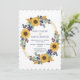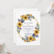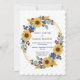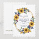This elegant wedding invitation design features a hand-painted sunflower wreath accented with blueberries and soft greenery. Warm yellow florals and muted botanical tones create a rustic yet refined aesthetic, perfect for fall or countryside celebrations. The circular floral frame adds timeless charm, making this design ideal for romantic, nature-inspired weddings.