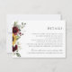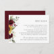 Sunflower Bourgogne Floral Détails Mariage Insertion Carte, Floral Merlot Sunflower Détails Carte, Rustique Rouge Floral Faire-part de mariage Set