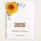 A stylish white background decorated with a rustic watercolored sunflower and eucalyptus greenery. Personalize and add a name and title. The name is written with a large modern hand lettered style script. Year 2022 is written with a balloon style font. Perfect for school, work or organizing your personal/family life.