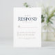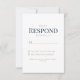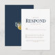 Carte de réponse RSVP marine & mariage blanc. Dîner & Danses. Police moderne. Police combinée. Gold et Navy Text. Des tournesols à l'arrière.
