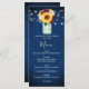 Ces cartes de menu mariage présentent une couleur de tournesol d'aquarelle et un design floral bordeaux avec des lampes à cordes sur un arrière - plan de grain de bois bleu marine. Personnalisez-les avec votre propre texte. Visitez notre magasin ou consultez nos pages de collection pour voir la gamme complète de produits correspondants que vous pouvez personnaliser pour votre jour de mariage.