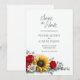 Let your friends and family know about your special day in style with this sunflower and red rose floral wedding save-the-date card. The easy-to-use text templates make adding all the necessary information a quick and simple task. With a variety of paper types and corner styles to choose from, you can create truly unique cards that reflect your individuality, along with the option to download if you prefer a digital format.