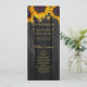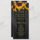 Élégant modèle de cérémonie de mariage de tournesol rustique avec de beaux bouquets de tournesols jaune vif et des cordes de lumières scintillantes sur un arrière - plan en bois marron foncé de style champêtre. +++++++++++++++ + Personnalisez-le avec vos coordonnées sur les deux côtés.+++++++++++ Convient pour pays rustique vintage jardin d'été chic traditionnel ou mariages de jardin extérieur automne. Téléchargement numérique disponible.