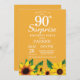 Sunflower Surprise 90th Birthday Invitation. Fleurs florales et Arrière - plan jaune. Country Vintage Retro. Femmes Anniversaire. 12ème 13ème 15ème 16ème 18ème 20ème 21ème 30ème 40ème 50ème 60ème 70ème 80ème 90ème 100ème, tout âge. Numérique imprimable. Pour plus de personnalisation, cliquez sur le bouton "Customiser" et utilisez notre outil de conception pour modifier ce modèle.
