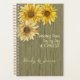 Keep track of all things wedding related in this sunflower planner. A country design of dark gray-green wood with three sunflowers in the upper corner of this 5x8 inch spiral bound planner. Create a title and include the date of the big day. Add names of the couple in script using one line or two. Inside, use the daily blocks to help plan upcoming events and all the to-do's leading up to the celebration. A planner makes a wonderful keepsake for the couple and is a useful and much needed help for organization.