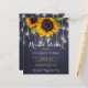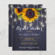 Rustique style campagnard budget abordable nuptiale douche fête élégante invitation modèle sur sombre minuit bleu marine chalkboard arrière - plan avec de gros bouquets de tournesol jaune et cordes de lumières scintillantes blanches. ++++++++++++++++ Personnalisez avec vos détails ! Vous pouvez choisir de le customiser en changeant davantage les polices et les couleurs de l'écriture. ++++++++++++++ L'invitation est adaptée pour l'été ou l'automne jardin extérieur jardin rustique campagne ferme douches nuptiales brunch déjeuners fêtes. +++++++++++ VEUILLEZ LIRE CECI AVANT D'ACHETER ! Il s'agit d'une carte de mariage abordable et économique imprimée sur une feuille papier (chaque feuille comporte une carte). ++++ Pour un rapport qualité-prix optimal, notre conseil est de choisir le type de papier Semi-Gloss (il est assez épais pour être utilisé pour la papeterie) ++++ Si vous avez besoin d'enveloppes, choisissez l'OPTION ENVELOPE. +++ Vérifiez toutes les informations et l'orthographe de votre texte car vous recevrez exactement ce que vous voyez - personne d'autre ne vérifiera quoi que ce soit avant l'impression. ++++ Cette carte est conçue pour la taille 4,5" x 5,6". Dans le coque vous choisissez une autre taille de la carte et le texte sort de la page, tout doit être corrigé avant d'ajouter le produit au panier. Demandez de l'aide au service Live Design.