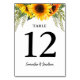 Ajoutez ces belles cartes de numéro de table à vos tables de réception de mariage. Le design présente une aquarelle de tournesols et de verdure qui apparaît sur le dessus de la carte. Personnalisez ces numéros de table de style campagnard avec les noms de la mariée et du marié et leur date de mariage.