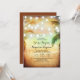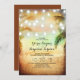 Une invitation au mariage absolument romantique et unique sur la plage avec un chapelet de lumières suspendues sur les palmiers. Invitations de mariage de plage tropicale et moderne avec coucher de soleil coloré.