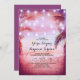 Une invitation au mariage absolument romantique et unique sur la plage avec un chapelet de lumières suspendues sur les palmiers. Invitations de mariage à la plage tropicale et moderne avec coucher de soleil sur la mer violet. Idéal pour les mariages d'île de destination aussi.