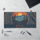 Faites un tour dans votre espace de travail grâce à notre tournoi de bureau Mandala Vintage Wilderness personnalisé. Ce superbe accessoire de bureau présente un design éclatant représentant un coucher de soleil radieux sur des chaînes de montagnes majestueuses et des pins silhoués, jetant des teintes chaudes d'oranges, de jaunes et de rouges contre des bleus et des verts terreux. La scène centrale est encadrée de mandalas à points complexes et de motifs floraux, disposés dans un motif d'inspiration art déco symétrique qui dégage un charme rustique et une élégance intemporelle. Conçu pour offrir une surface lisse et confortable à votre bureau, ce tapis combine fonctionnalité et une touche de beauté artistique. Personnalisez-le avec votre nom pour une déclaration unique qui transforme votre espace de travail en un havre inspirant.