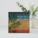 Elégant faire-part de mariage de couleur riche, idéal pour les mariages sur la plage, les mariages de destination et les mariages des stations tropicales de l'île. Coucher de soleil bleu, jaune et rouge, avec branches de palmiers vert foncé. Facile à customiser avec vos informations de mariage en ligne.
