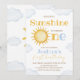 Celebrate your little one with this "Our Little Sunshine" 1st birthday invitation. Featuring a retro watercolor sun and soft blue clouds. Perfect for a gender-neutral summer or boho-themed party.