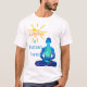 Radiate calm, warmth, and inner light with this Sunshine in Human Form t-shirt. The design features a vibrant watercolor illustration of a serene blue-skinned human figure in meditation, surrounded by softly glowing stars that evoke peace and cosmic balance. Above the figure, a radiant sunburst frames the uplifting phrase Sunshine in Human Form, celebrating positivity as a state of being.