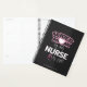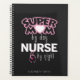 Super Maman par jour Nurse by Night. Super Maman en majuscules rose avec un coeur rose et blanc avec par jour Infirmière par nuit en script mixte et majuscules sans police en blanc. Un stéthoscope rose est suspendu à la lettre u de NURSE.