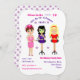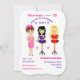 Super mignonne invitation à la fête d'anniversaire pour les jeunes adolescentes ayant une fête de beauté montrant des filles ayant des cheveux, du maquillage et des soins de beauté sur les chaises de salon, un invitation ludique coloré qui est facile à customiser avec votre nom personnel et les détails de la fête sans frais supplémentaires.