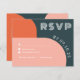 Une carte d'enceinte RSVP de mariage moderne éclatant de pop de couleur orange, bleu turquoise vert et pêche et arche super pour une ambiance boho rétro les années 70. Il est fourni avec un code QR à RSVP ou pour diriger vos invités vers votre site mariage.