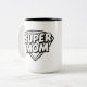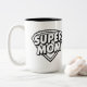 Design graphique avec les mots "SUPER MOM" dans une police stylisée et audacieuse.