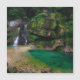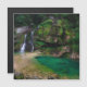 Photo de paysage d'une magnifique cascade Virje en Slovénie. La partie inférieure de la photo est une eau turquoise cristalline avec des couleurs vertes et un lit rocheux. Au-dessus de gros rochers se dressent recouverts de mousse verte. La cascade semble émerger d'au-dessus de ces gros rochers qui tombent et coulent sur eux. Au-dessus de ces rochers et cascades se dresse une forêt verte luxuriante.