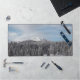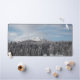 Photographie d'un paysage d'hiver magnifique avec nuages de lait, montagnes enneigées et forêt d'épinettes.