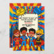 Featuring a fun, comic-style design with heroic flair, this template is perfect for boys and girls who love action, adventure, and superpowers. Fully customizable—add your own party details.