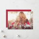 Partagez vos voeux de vacances avec ces cartes photo de Noël avec votre photo préférée horizontale ou orientée paysage en frappant fond de sang total. "Joyeux Noël" apparaît en bas comme une superposition de texte dans une brosse blanche typographie lettrée. Personnalisez avec votre nom de famille ou vos noms en-dessous. Les cartes renversent à un point aquarelle et motif feuille en vert d'épinette festif.