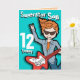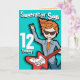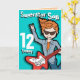 Cette carte dit "Superstar Son 12 aujourd'hui. À l'intérieur : "Joyeux anniversaire". Ou customisez avec vos propres mots. Carte amusante conçue exclusivement par Sarah Trett.