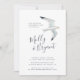 Nos élégantes invitations à des fêtes d'été présentent un style nautique classique avec un look épuré et minimaliste. Le design est doté d'une illustration de mouette aquarelle, avec les détails de la célébration fiançailles dans un combo chic de typographie en bloc, italique et manuscrite. Parfait pour les fêtes nautiques, de plage ou d'été. Invitations inversées à des rayures ondulées dessinées à la main dans le ton sur ton bleu gris fumé.