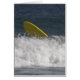 Image d'une planche en surf jaune qui sort des vagues après une essuie-glace.
