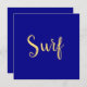Ce design balnéaire présente un grand "Surf" centré écrit dans un texte festif et élégant contre un arrière - plan bleu marine.