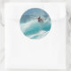 Autocollant photo rond d'un surfeur professionnel surfant son planche sur une grande vague à Banzai Pipeline, North Shore, Oahu, Hawaii.