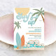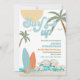 Make waves with this fun surfing beach birthday party invitation! Featuring pastel ocean waves, palm trees, surfboards, and a tropical sun, this cheerful design sets the perfect tone for a seaside celebration. Ideal for kids birthdays, summer parties, or tropical-themed events, it combines playful style with a vibrant coastal vibe. Personalize with your party details and get ready to ride the wave of excitement!