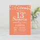Invitation surprise 13e anniversaire avec lumières à cordes. Arrière - plan de corail. Femme Lady Élégante anniversaire moderne. Anniversaire enfant. Invitation Anniversaire garçon ou fille. 13ème 15ème 16ème 18ème 20ème 21ème 30ème 40ème 50ème 60ème 70ème 80ème 90ème 100ème, Tout âge. Pour plus de personnalisation, cliquez sur le bouton "Customiser" et utilisez notre outil de conception pour modifier ce modèle.