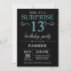 Surprise 13e anniversaire Invitation Noir et Turqu