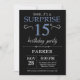 Surprise 15e anniversaire Invitation noir et bleu