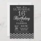 Surprise 16e anniversaire Invitation avec Parties scintillant d'argent Chevron. Tableau de bord. Parties scintillant noire et argent. Anniversaire enfant. Invitation Anniversaire garçon ou fille. Pour plus de personnalisation, cliquez sur le bouton "Customiser" et utilisez notre outil de conception pour modifier ce modèle.