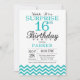 Surprise 16e anniversaire Invitation Turquoise Che