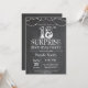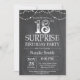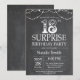 Surprise 18e anniversaire Invitation avec Chalkboard Arrière - plan noir et blanc. Éclairage à cordes. Anniversaire adulte. Hommes ou Femmes Anniversaire. Pour plus de personnalisation, cliquez sur le bouton "Customiser" et utilisez notre outil de conception pour modifier ce modèle.