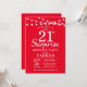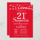 Invitation surprise 21e anniversaire avec lumières à cordes. Arrière - plan rouge. 13ème 15ème 16ème 18ème 20ème 21ème 30ème 40ème 50ème 60ème 70ème 80ème 90ème 100ème, Tout âge. Pour plus de personnalisation, cliquez sur le bouton "Customiser" et utilisez notre outil de conception pour modifier ce modèle.