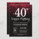 Invitation surprise 40e anniversaire avec des lumières à cordes rouges avec Arrière - plan Parties scintillant rouge. Anniversaire rouge. Anniversaire adulte. Hommes ou Femmes Anniversaire Invitation. 13ème 15ème 16ème 18ème 20ème 21ème 30ème 40ème 50ème 60ème 70ème 80ème 90ème 100ème, Tout âge. Pour plus de personnalisation, cliquez sur le bouton "Customiser" et utilisez notre outil de conception pour modifier ce modèle.