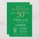Surprise 50e anniversaire Invitation avec Arrière - plan de Parties scintillant verte et or. Anniversaire adulte. Hommes ou Femmes Anniversaire Invitation. N'importe quel âge. Pour plus de personnalisation, cliquez sur le bouton "Customiser" et utilisez notre outil de conception pour modifier ce modèle.