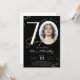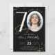 Surprise 70th Birthday Black Gold Photo Invitation fait partie de la collection Birthday Invitations. Ce produit est doté de scintilles de parties scintillant dorée personnalisables en section photo. Fait avec des polices décoratives. Explorez d'autres produits correspondants dans notre magasin.